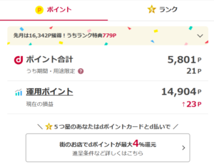 ちなみにdポイントは下のようにあり、買い物したものとか含めるとポイント色々付くので、買い物+歩いたdポイントの反映日基準で報告が良い気がしました。また考えます🤔